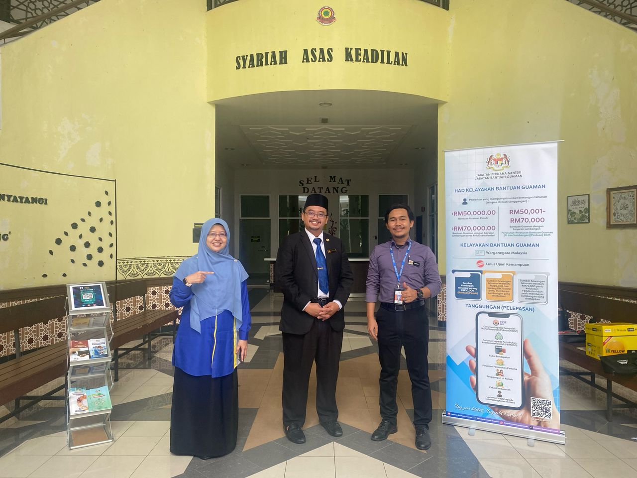 Mahkamah berbesar hati menerima kunjungan dua orang pegawai wakil JBG, iaitu Puan Aiman Binti Ruslan dan Amirul Bin Faizal bagi melaksanakan program klinik tersebut. Program Klinik Guaman Syarie ini bertujuan memberikan khidmat nasihat dan pendedahan berkenaan perundangan syariah kepada orang ramai di samping membantu meningkatkan kefahaman masyarakat terhadap hak dan tanggungjawab mereka di bawah undang-undang Islam.